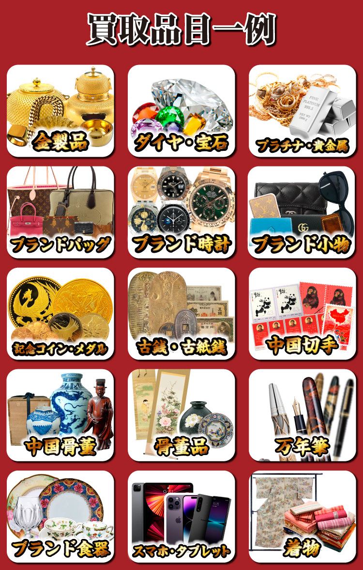 金・貴金属・ブランド品はもちろん、お値段がつくか迷われているものも是非お持ちください。